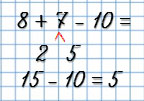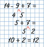 | 8 + 7 - 10 = 5 | 14 - 9 + 7 = 12 |