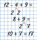 | 7 + 7 - 10 = 4 | 17 - 10 + 9 = 16 |