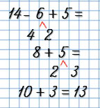 | 12 - 4 + 9 = 17 | 14 - 6 + 5 = 13 |