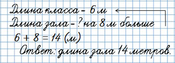 6. Длина класса 6 м, а длина зала на 8 м больше. Узнай длину зала.
