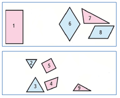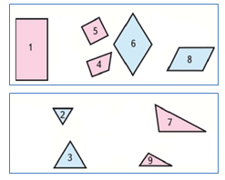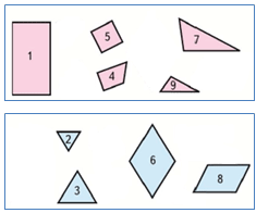 Первая группа: фигуры розового цвета (1, 4, 5, 7, 9).