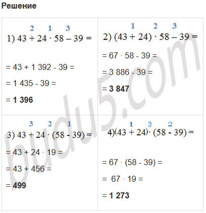 3) 43 + 24 ∙ (58 - 39);