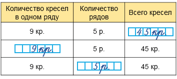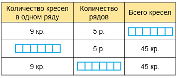 Во время просмотра мультфильмов ребят рассадили в 5 рядов по 9 кресел в каждом ряду. Сколько всего кресел заняли ребята?