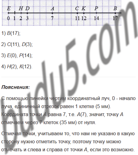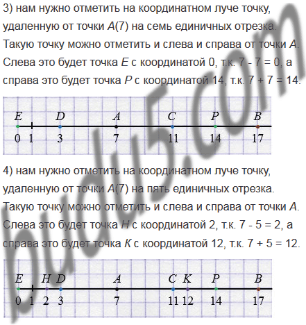 Начертите координатный луч и отметьте на нем точку, удаленную от точки А(7) на: