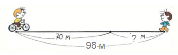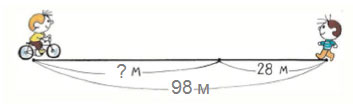 Расстояние между Сашей и Юрой было 98 м. Саша проехал на велосипеде 70 метров. Сколько метров до встречи прошёл Юра?