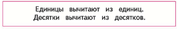 Обратите внимание, при вычитании в столбик, ставим точку над десятками, чтобы не забыть о том, что 1 десяток забрали, если единицы уменьшаемого меньше единиц вычитаемого.