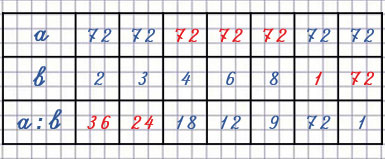 72 : 3 = (60 + 12) : 3 = 20 + 4 = 24