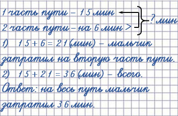 3. Половину пути от дома до школы мальчик прошёл за 15 мин, а на остальной путь он затратил на 6 мин больше. Сколько времени он затратил на весь путь до школы?