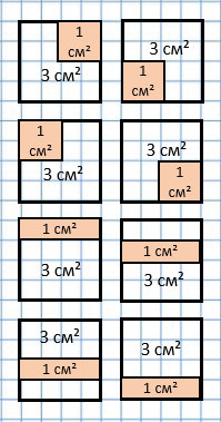 4. Начерти квадрат, площадь которого равна 4 см². Раскрась его четвертую часть. Покажи, как это можно сделать по-разному. Сколько квадратных сантиметров раскрашено? Чему равна площадь нераскрашенной части?