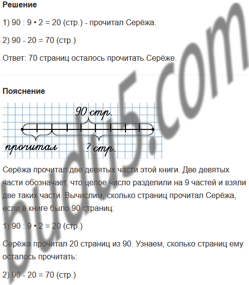 81. В книге 90 страниц. За один день Серёжа прочитал две девятых части этой книги. Сколько страниц этой книги осталось прочитать Серёже?