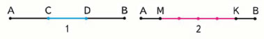 300. Какую часть отрезка АВ составляет отрезок CD на чертеже 1? отрезок МК на чертеже 2?