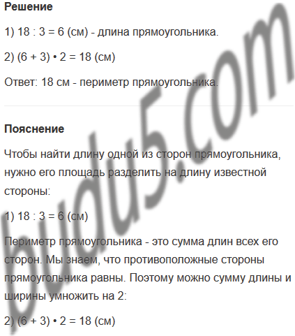 9. Найди периметр прямоугольника, если его площадь 18 см2, а длина одной стороны 3 см.