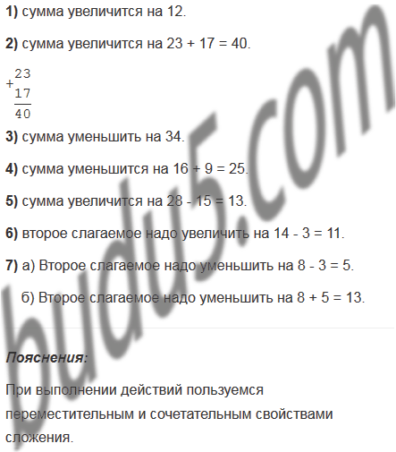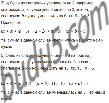 7) Одно из слагаемых увеличили на 8. Как надо изменить второе слагаемое, чтобы сумма: а) увеличилась на 3; б) уменьшилась на 5?