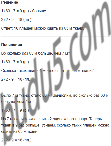 3. Из 7 м ткани можно сшить 2 одинаковых плаща. Сколько таких плащей можно сшить из 63 м такой же ткани?