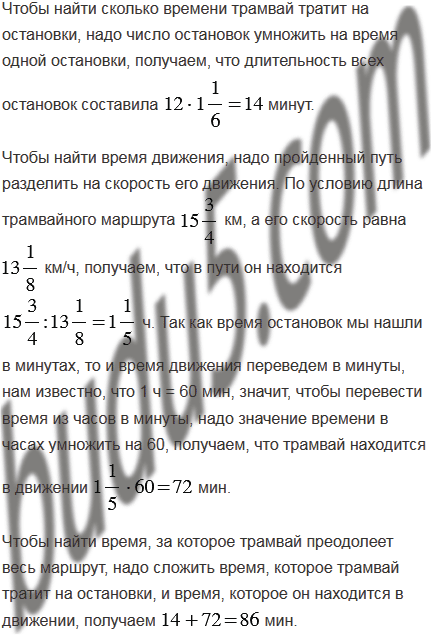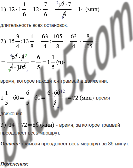 Длина трамвайного маршрута км. На маршруте есть 12 остановок, на каждой из которых трамвай стоит мин. За какое время трамвай преодолеет весь маршрут, если его скорость равна км/ч?