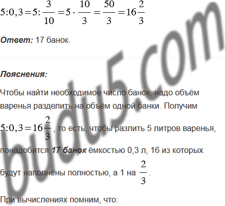 Какое наименьшее количество банок ёмкостью 0,3 л необходимо взять, чтобы разлить в них 5 л варенья?