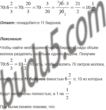 Какое наименьшее количество бидонов ёмкостью л необходимо взять, чтобы разлить в них 70 л молока?