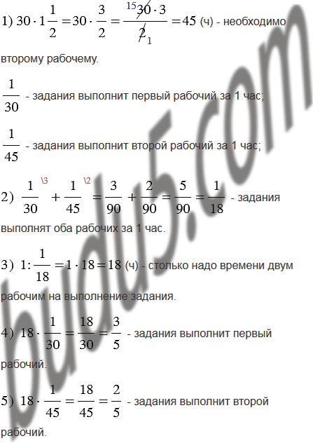 Первый рабочий может выполнить задание за 30 ч, а второму для этого необходимо в