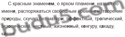 С красным знамен.., о ярком пламен.., назвал по имен.., распоряжаться свободным времен.., творение пр..роды, скучал без матер.., э(ф, фф)ектный, тропический, экзотический, чес(?)ный, жизне(н, нн)ый, к..нгуру, к..каду, к..шне.