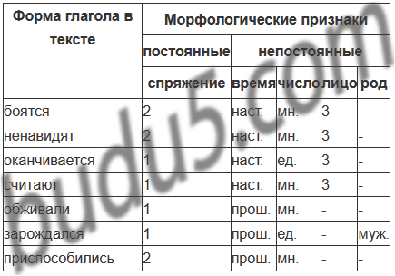3. Выпишите из текста глаголы и укажите их морфологические признаки, заполнив таблицу.