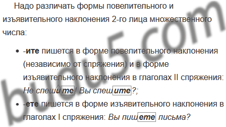 | Повелительное | Пиш-и-те письма! | Не спеш-и-те! |