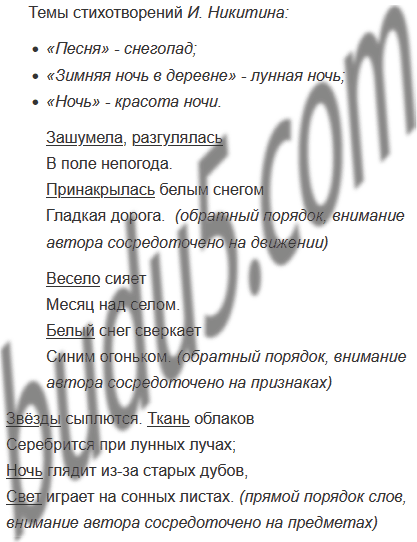 Перепишите четверостишия из стихотворений И. Никитина «Песня» и «Зимняя ночь в деревне», «Ночь». Определите тему каждого из них.