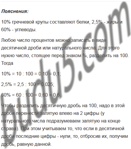 Известно, что 10% гречневой крупы составляют белки, 2,5% - жиры и 60% - углеводы. Сколько каждого из этих продуктов содержится в 5 кг гречневой крупы?