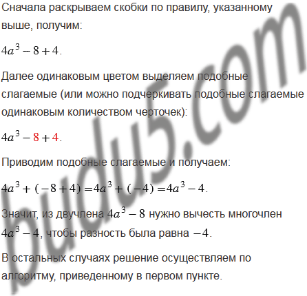 Какой многочлен надо вычесть из двучлена , чтобы разность была равна: