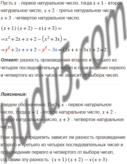 Выбрали некоторые четыре последовательных натуральных числа. Зависит ли разность произведения второго и третьего из этих чисел и произведения первого и четвертого от выбора чисел?