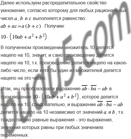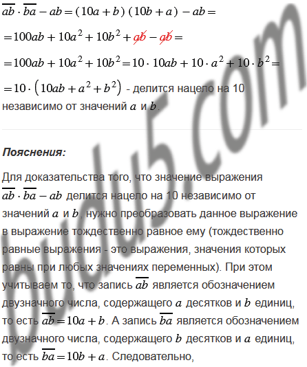 Докажите, что значение выражения делится нацело на 10 независимо от значений и .
