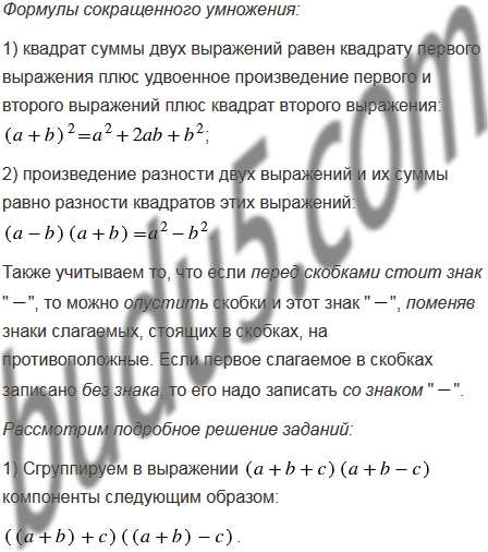Используя формулы сокращенного умножения, представьте в виде многочлена выражение: