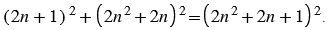 Данное тождество является правилом великого древнегреческого ученого Пифагора (VI в. до н.э.) для вычисления целочисленных значений длин сторон прямоугольного треугольника. При одних и тех же натуральных значениях