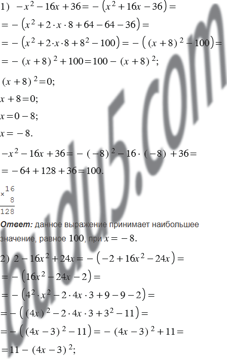 Какое наибольшее значение и при каком значении переменной принимает выражение: