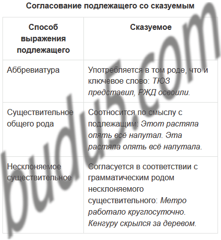 • Проанализируйте предложения и составьте таблицу-подсказку со сведениями о том, как согласовать сказуемое с подлежащим, если подлежащее выражено: 1) аббревиатурой; 2) именем существительным общего рода; 3) несклоняемым именем существительным.