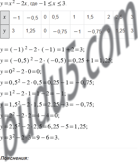 Составьте таблицу значений функции, заданной формулой , где , с шагом 0,5.