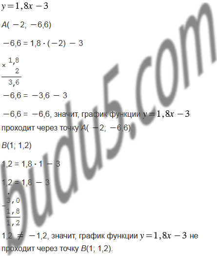 Не выполняя построения графика функции , определите, через какие из данных точек проходит этот график: А( 2; 6,6); В(1; 1,2); С(0; 3); D(5; 7).
