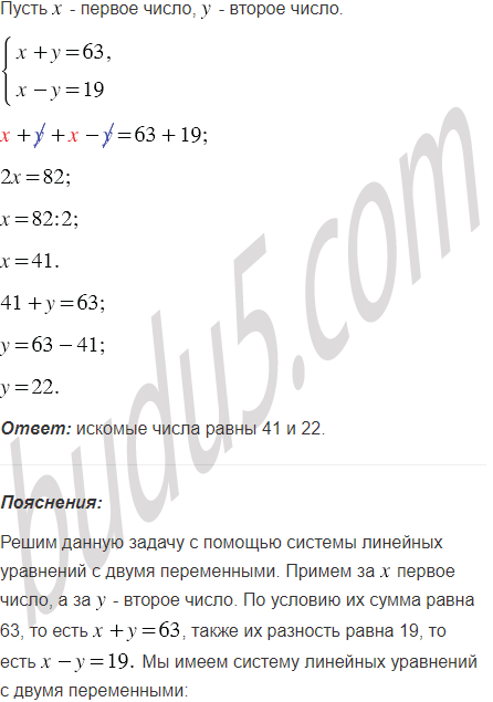 Найдите два числа, если их сумма равна 63, а разность равна 19.