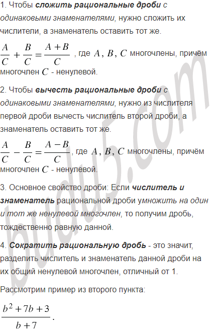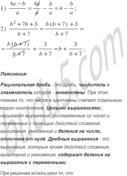 Представьте данную дробь в виде суммы или разности целого и дробного выражений: