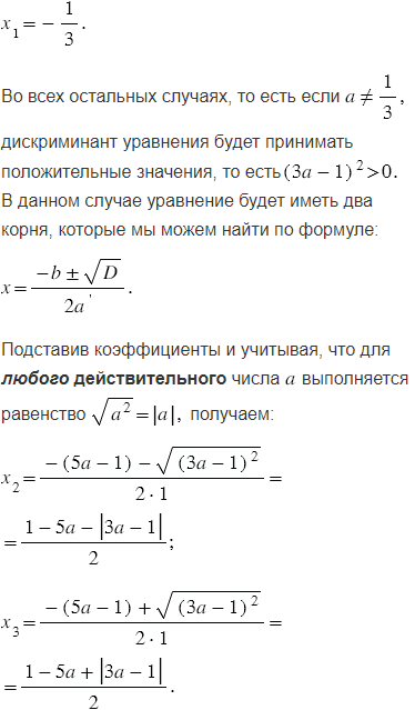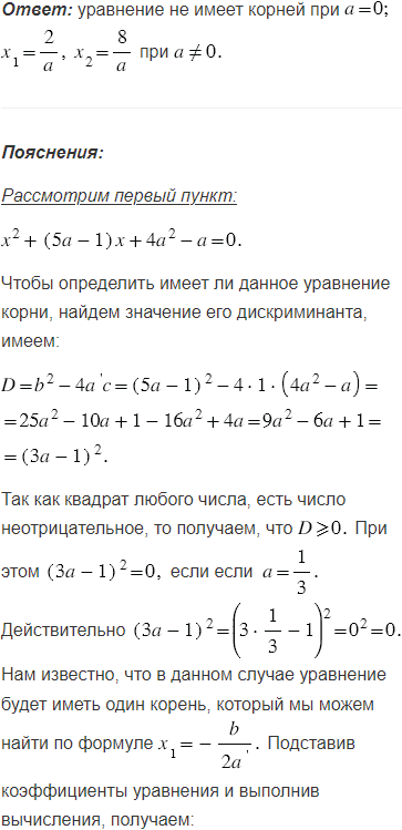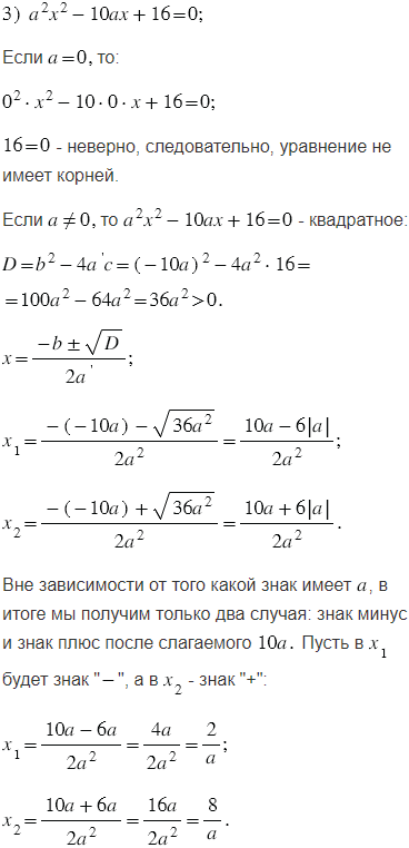 Для каждого значения решите уравнение: