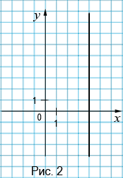 - произвольное число, является решением нашего уравнения. Откуда можно заключить, что искомый график содержит все точки, у которых абсцисса равна 4, а ордината - любое число, но все эти точки принадлежат прямой, которая перпендикулярна оси абсцисс и проходит через точку (4; 0) (рис. 2). Тогда решением данного уравнения будут пары чисел, которые являются координатами точек, принадлежащих полученной прямой.